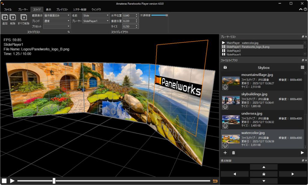 このPanelworksでの上映イメージのプレビューにご利用いただける、Amateras Panelworks Playerも合わせてリリースいたしました。機能確認やプレイリストの作成など、本番運用の事前検証と準備にもお使いいただけます。