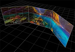 Amaterasの強力な投影補正機能を使って、静止画や動画に歪み補正やブレンディングなどの映像加工(スライスと呼びます)をかけて変換するソフトウェアです。これにより、Amateras Serverを使用せずに市販のサイネージプレーヤーなどで曲面スクリーンへの投影やマルチプロジェクションが実現できます。
