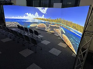 必要に応じてDIYでも構築できる可搬型イマーシブシアターソリューションです。多人数で同時視聴が可能な広視野映像空間を3面スクリーンで簡単に構築できます。イベントや巡回展示、デモンストレーションなど、幅広い用途にご活用下さい。